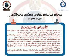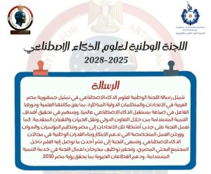 أعلنت اللجنة الوطنية لعلوم الذكاء الاصطناعي بأكاديمية البحث العلمي برئاسة الأستاذ الدكتور محمود عبد العاطي منهج عملها خلال السنوات الثلاثة القادمة وهى مدة الدورة الجديدة للجنة ( ٢٠٢٥ – ٢٠٢٨ )، وهو منهج علمي يرتكز وفق ما صرح به رئيس اللجنة الوطنية لعلوم الذكاء الاصطناعي على الأهداف الاستراتيجية للجنة في دورة عملها الحديدة، فضلا عن محورين هامين، وهما رسالة اللجنة ورؤية اللجنة وكلاهما يكمل الآخر وفق الأهداف الاستراتيجية العامة للجنة الوطنية لعلوم الذكاء الاصطناعي، وأشار رئيس اللجنة الأستاذ الدكتور محمود عبد العاطي إلى أهمية الإعلان عن إستراتيجية اللجنة ورسالتها ورؤيتها بما يمثله من تعزيز مكانة مصر في مجال الذكاء الاصطناعي وتمكين المجتمع البحثي والابتكاري من مواكبة التطورات العالمية المتسارعة.